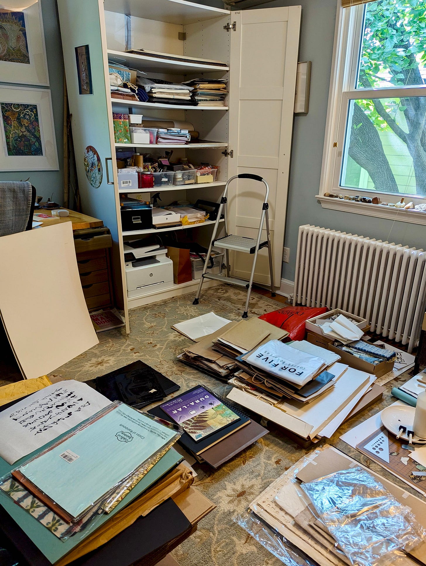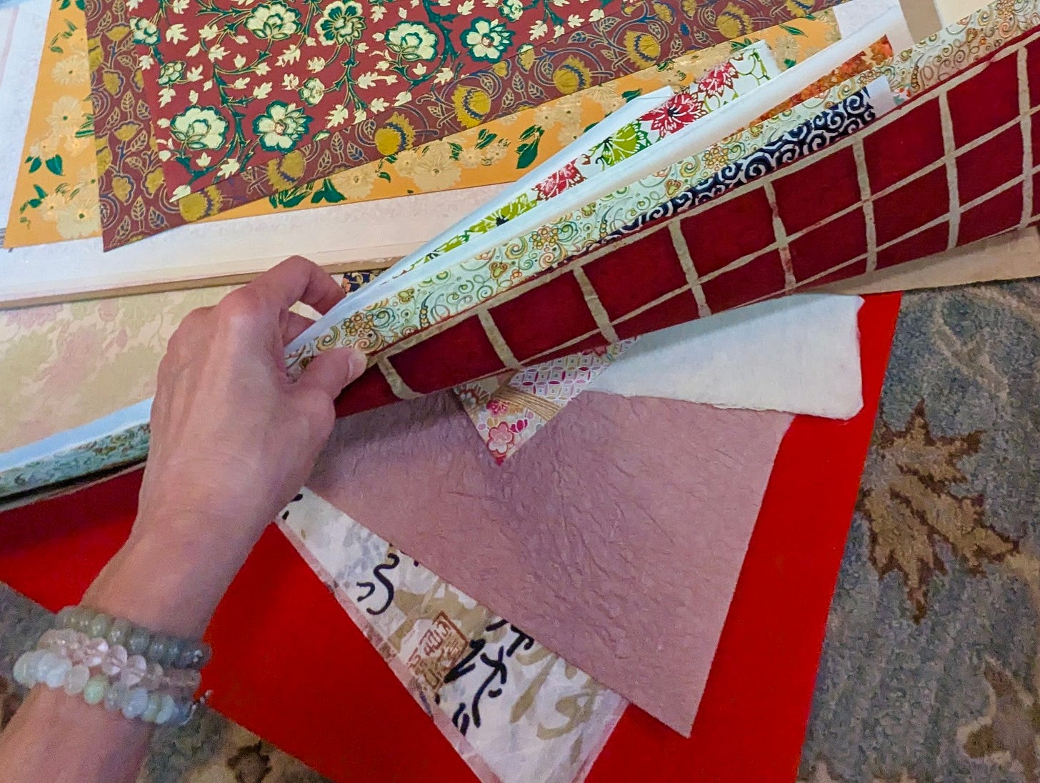 I went through the decorative papers. Why were so many of them red? Maybe they all weren’t, but that’s all I could see. It’s all I could feel, and it was too much. Even if I closed my eyes, I could still feel the intensity. I had to leave my studio.